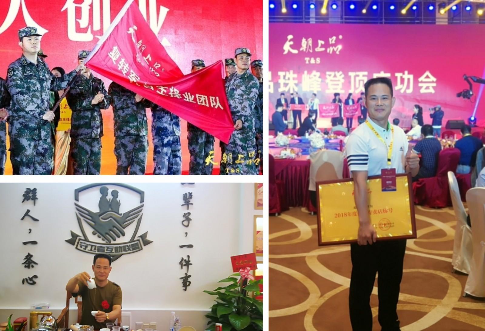 湖南經(jīng)銷商鄧建勛老總是一名從軍26年的退役上校軍官,2017年12月加入天朝上品后,充分發(fā)揮軍人特質(zhì)特長,積極整合身邊人脈資源,不遺余力地將天朝上品“致敬守衛(wèi)者”推薦給廣大復(fù)轉(zhuǎn)軍人,同時組建團(tuán)隊助力復(fù)轉(zhuǎn)軍人就業(yè)創(chuàng)業(yè),為推動天朝上品高質(zhì)量發(fā)展有一份熱發(fā)一份光。
