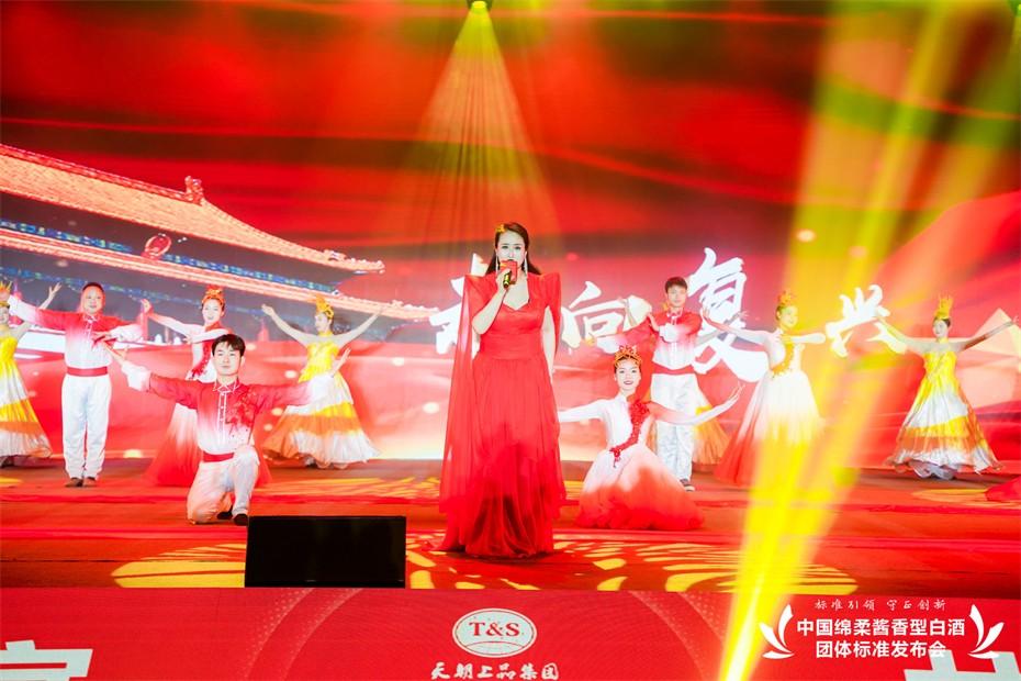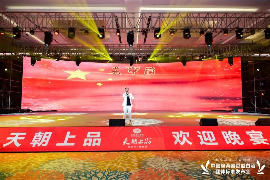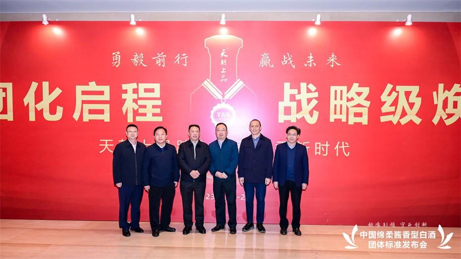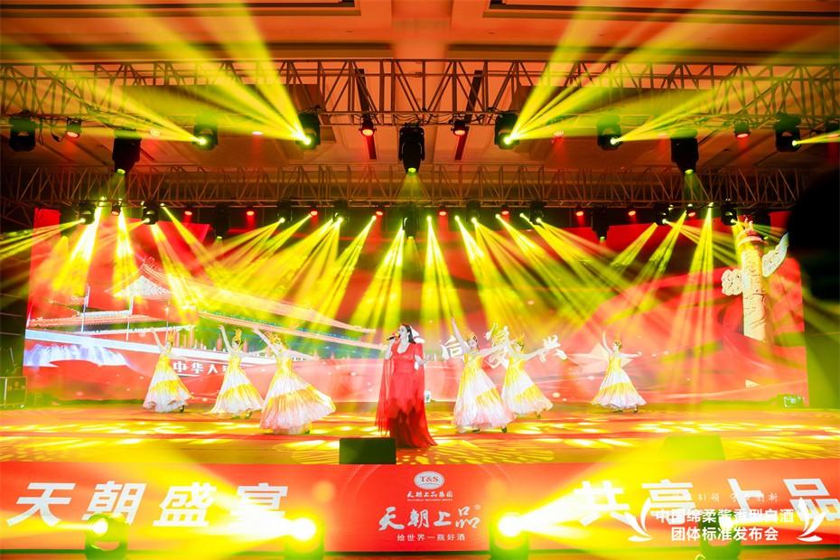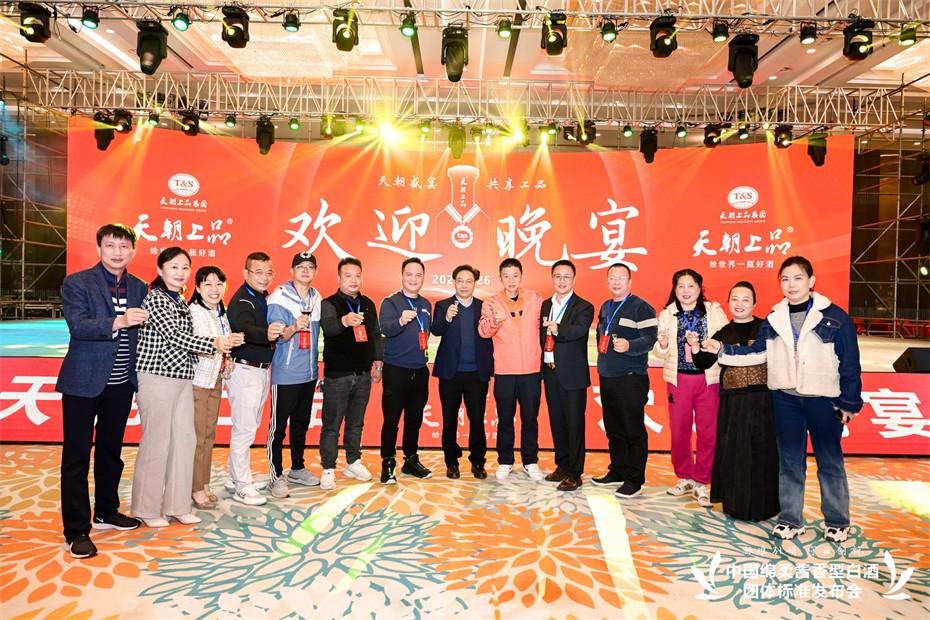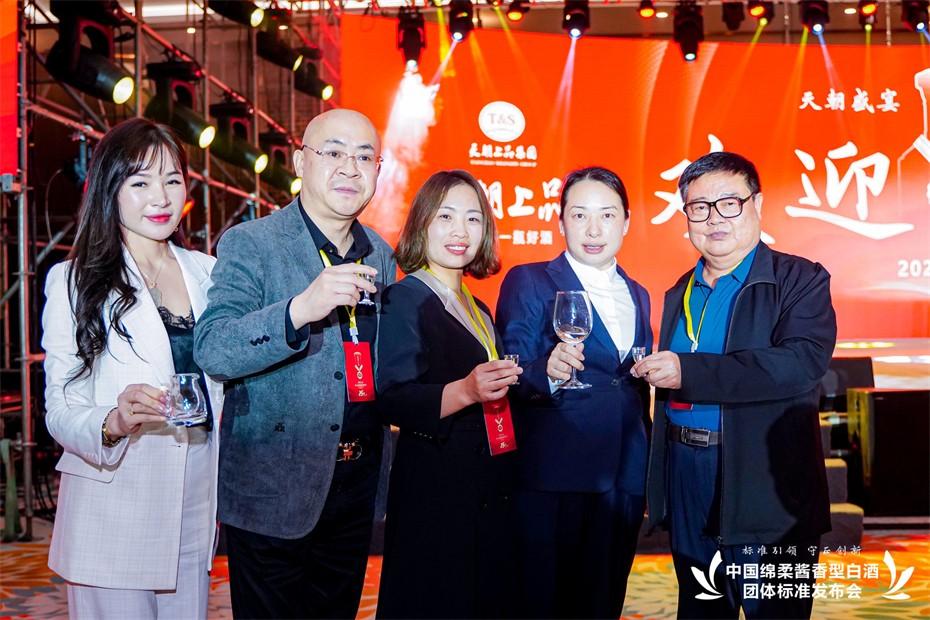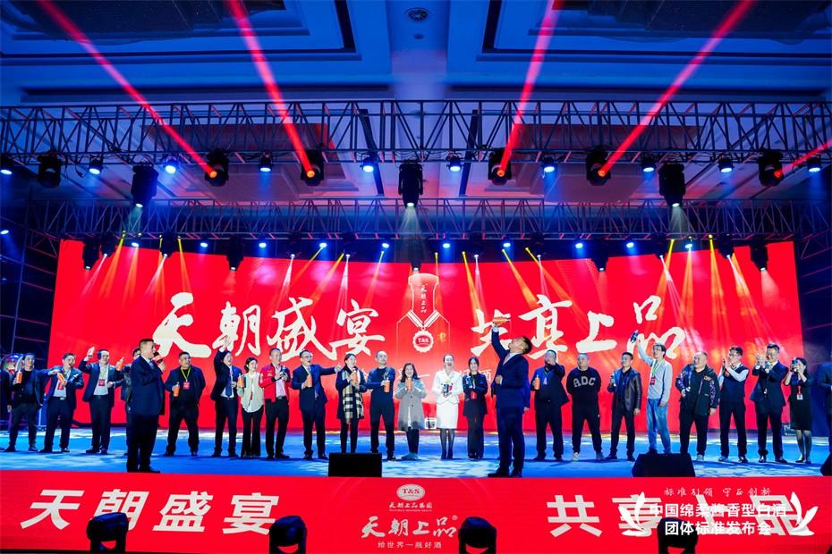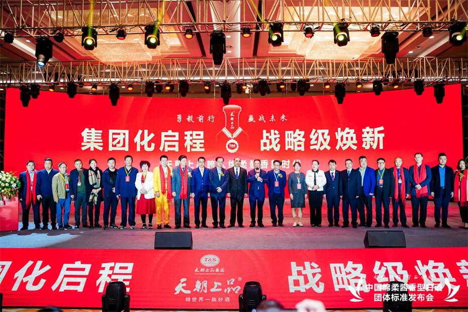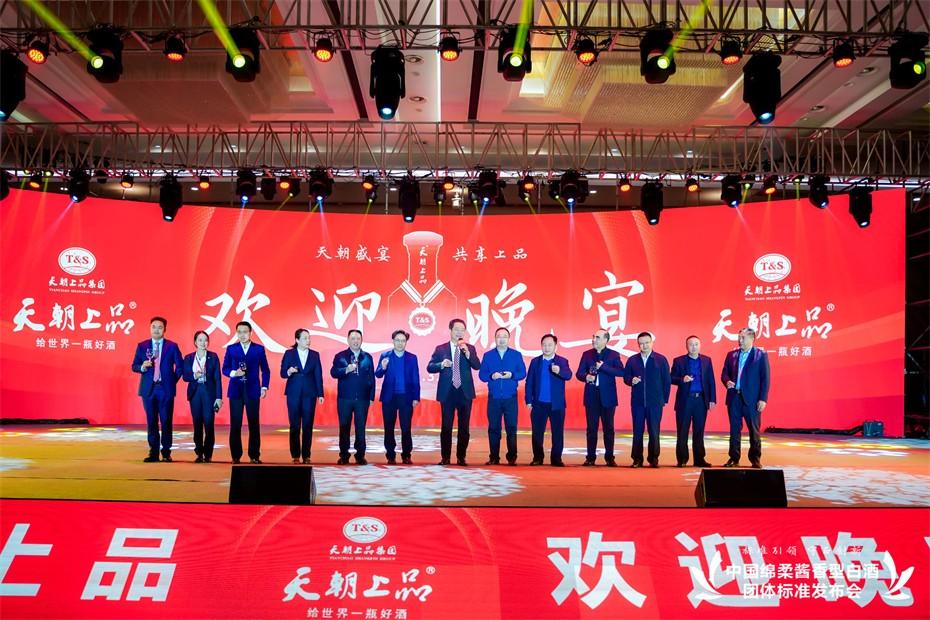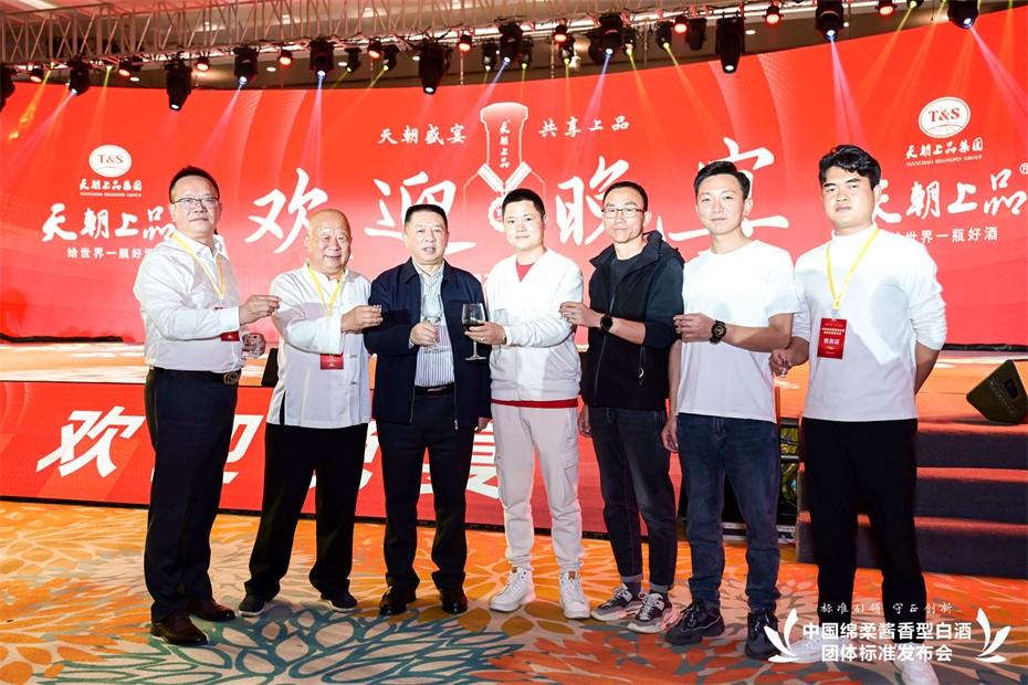 在現(xiàn)場千余位來賓共同見證下,中國食品工業(yè)協(xié)會總工程師李宇,中國食品發(fā)酵工業(yè)研究院副院長王德良,中國食品發(fā)酵工業(yè)研究院高級工程師孟鎮(zhèn),中國酒類流通協(xié)會副秘書長趙禹,國家食品質(zhì)量監(jiān)督檢驗中心副主任程勁松,遵義市(仁懷市)酒業(yè)協(xié)會會長呂云懷,貴州省標準化協(xié)會理事長田軍,天朝上品迎賓酒業(yè)副董事長、首席專家梁明鋒,天朝上品集團董事長黃永毅一同敲響出征的戰(zhàn)鼓,《綿柔醬香型白酒》全國團體標準正式啟動。