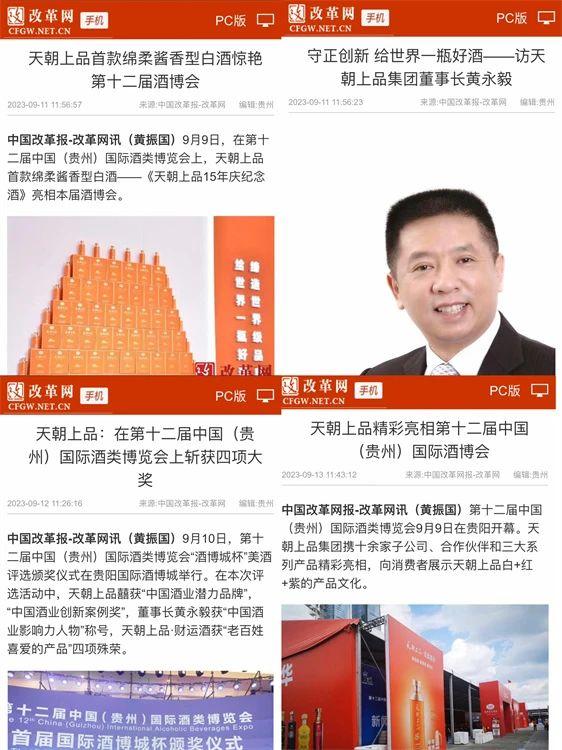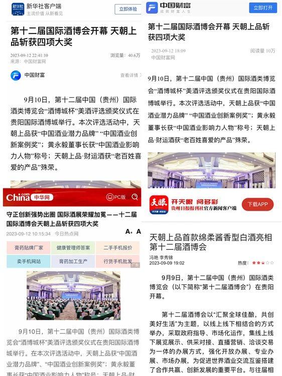 9月9日-12日,以“匯聚全球佳釀 共創(chuàng)美好生活”為主題的第十二屆中國(貴州)國際酒類博覽會在貴陽舉辦。新華社客戶端、人民日報客戶端、中華網(wǎng)、中國財富網(wǎng)、改革網(wǎng)、搜狐、網(wǎng)易、《中國商界》、《貴商》雜志、貴州日報《天眼新聞》、貴州廣播電視臺《百姓關(guān)注》欄目、貴陽廣播電視臺《直通貴陽》欄目、貴州旅游在線、觀山湖區(qū)融媒體等多家媒體深入天朝上品展館,直擊活動現(xiàn)場,記錄精彩瞬間,報道天朝上品熱銷酒博盛況,專訪天朝上品集團負責人,這也是天朝上品繼中國綿柔醬香型白酒團體標準發(fā)布會之后,再次成為媒體持續(xù)關(guān)注的焦點和熱點。