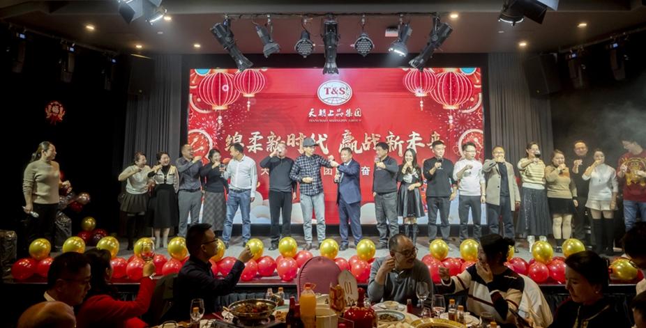 副董事長吳瑛致祝酒詞,她寄語天朝上品人“長風破浪會有時,直掛云帆濟滄海?!泵恳晃惶斐掀啡硕际且粓F火、一束光,匯聚在一起,就能釋放出巨大的能量,放射出璀璨的光芒。希望大家不忘初心、牢記使命,在新的一年里再攀新高、再創(chuàng)輝煌!只要我們堅定信心,不懼挑戰(zhàn),勇毅前行,天朝上品的宏偉目標必定實現(xiàn)!