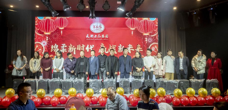 瑞兔歡躍送冬去,祥龍騰飛迎春來。2024年2月5日,天朝上品集團以“綿柔新時代 贏戰(zhàn)新未來”為主題,舉行甲辰龍年大聯(lián)歡年會。貴州省國際國內公共關系協(xié)會會長齊新潮,貴州省珠寶商會會長蔡策程、貴陽市云巖區(qū)中小企業(yè)協(xié)會會長楊敏,天朝上品老朋友匡彥燕女士、陳婧女士與集團領導班子、子公司代表和總部員工歡聚一堂,共同回顧2023年不平凡的歷程,一起憧憬天朝上品美好未來。