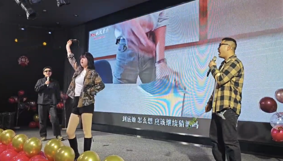 集團員工陶婕(左)、袁國瑞(中)、吳文婷(右)主持年會