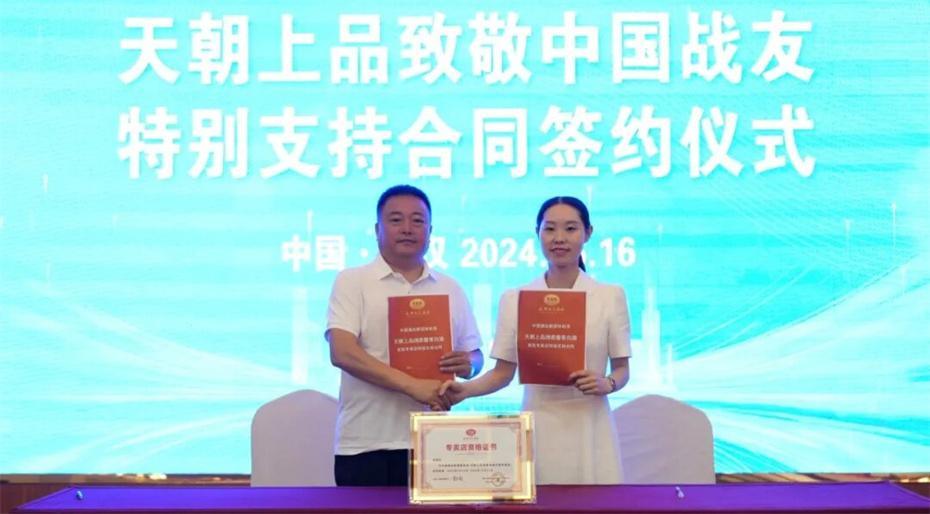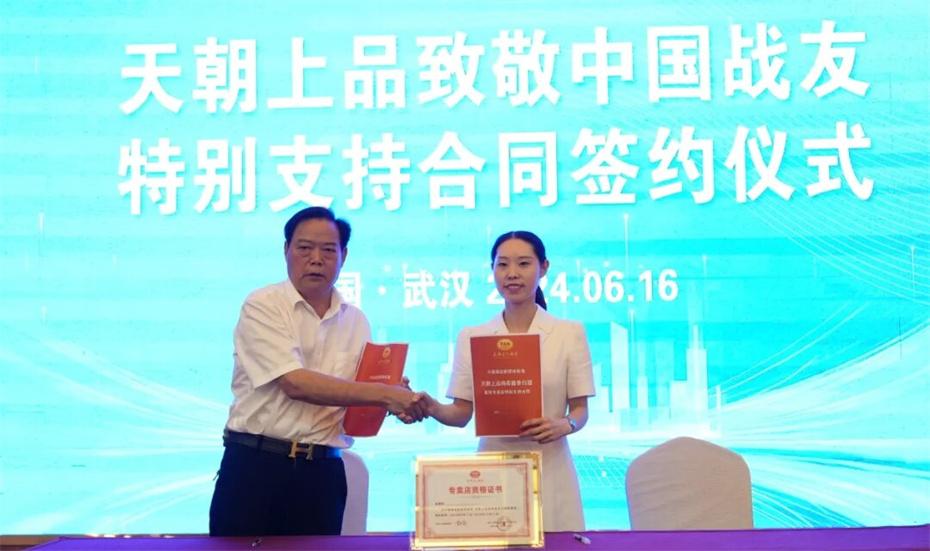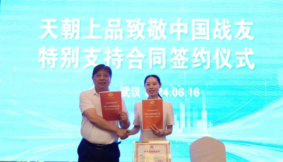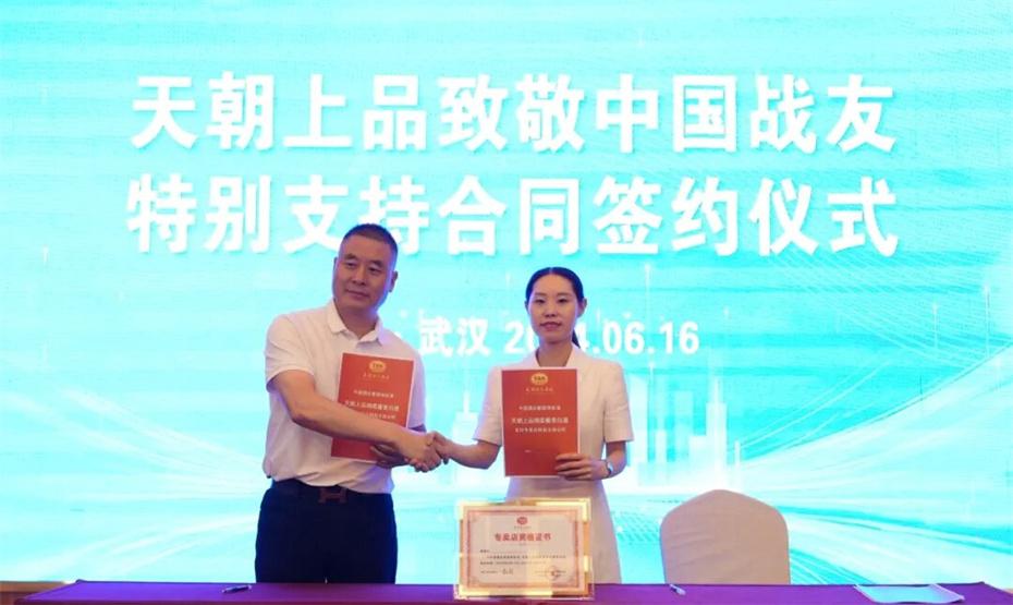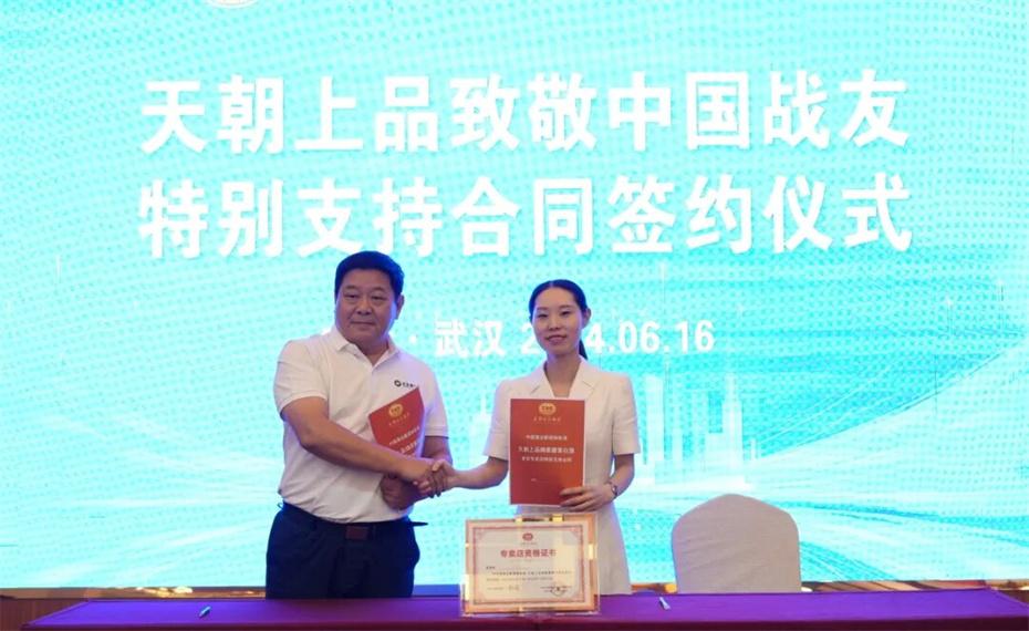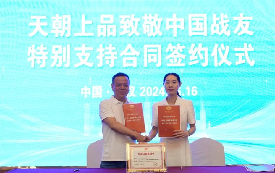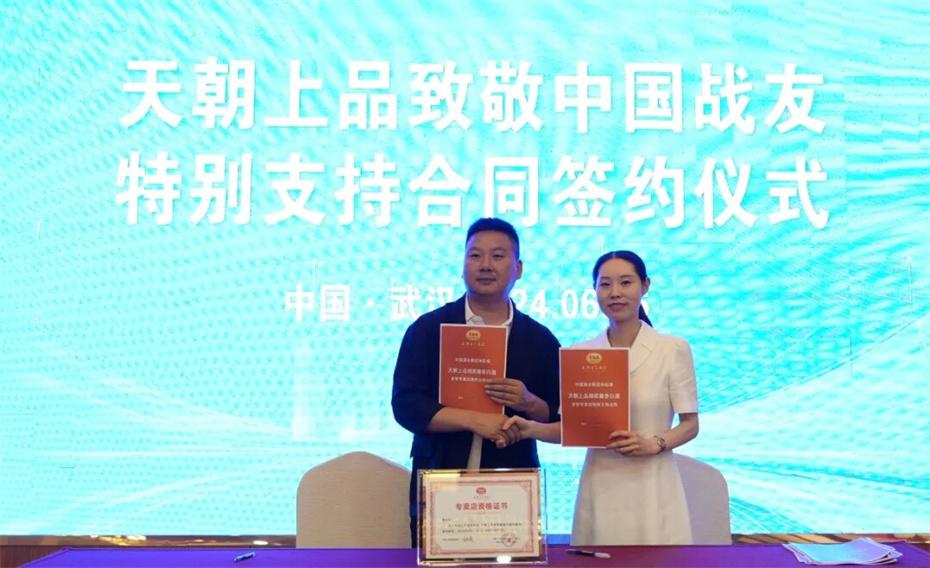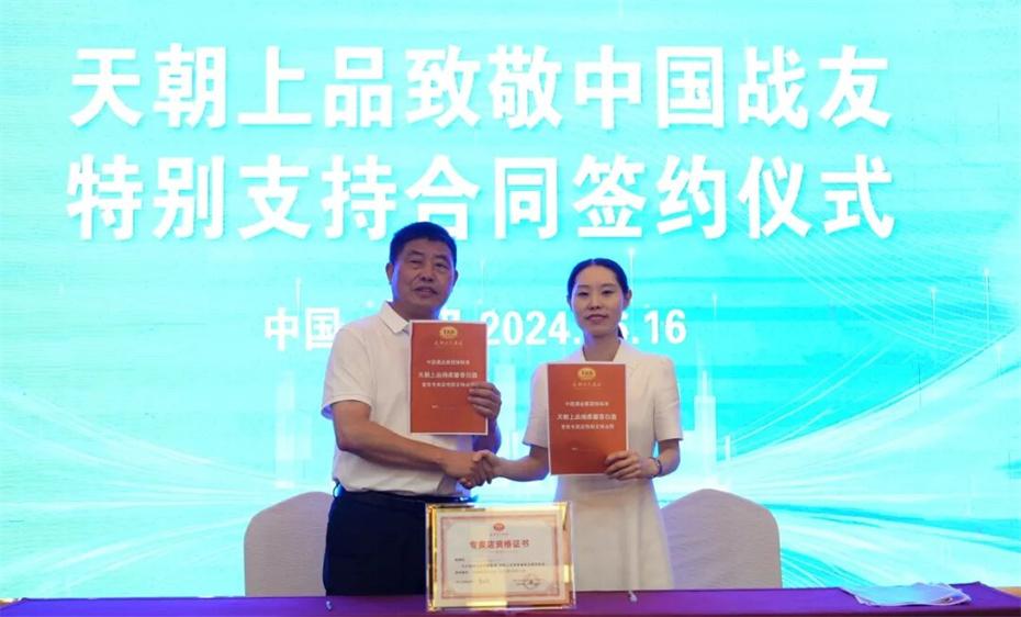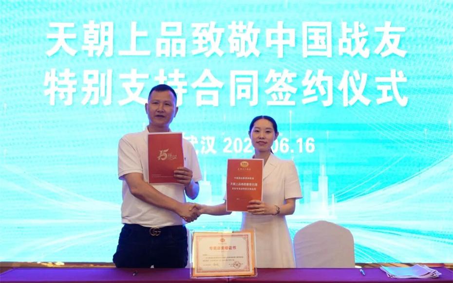 在本次大會上,天朝上品集團聘請華圖集團董事長張志飛,戰(zhàn)友集團黨委書記、董事長楊建橋擔任天朝上品集團共同主席。楊建橋董事長表示,戰(zhàn)友集團是一支以退役軍人和共產黨員為主體的團隊?!皯?zhàn)友”是我們的共同名稱,“鐵軍”是一個品牌標簽。雖然大家脫下了軍裝,轉移了戰(zhàn)場,但是退役不退色,轉業(yè)不轉向。天朝上品就是“國潮上品”。戰(zhàn)友集團與之結盟,相信必將在更廣闊的市場攜手并進,在更強大的平臺上書寫新的輝煌。我們要巧借共推綿柔醬香中國酒業(yè)團體新標準的東風,成就退役軍人轉移戰(zhàn)場之后的新輝煌!