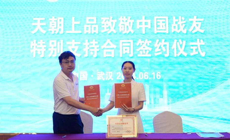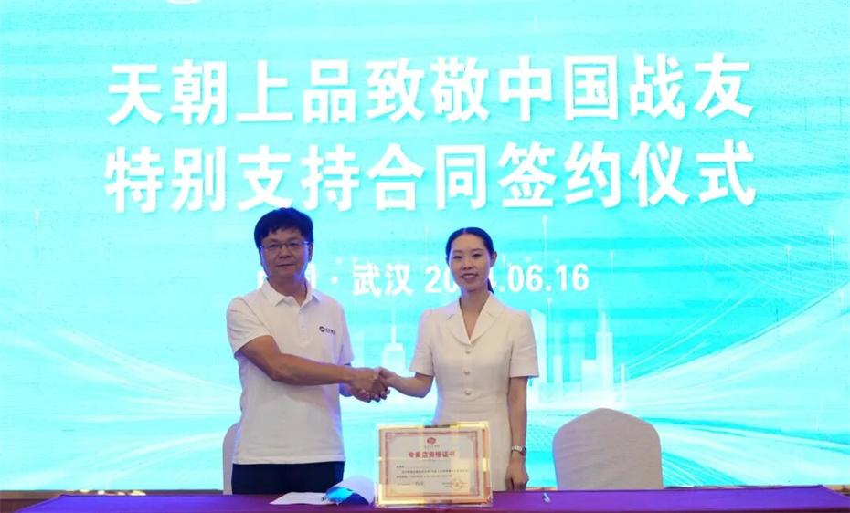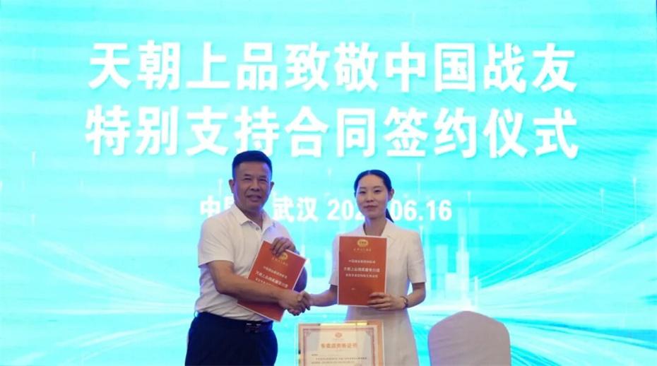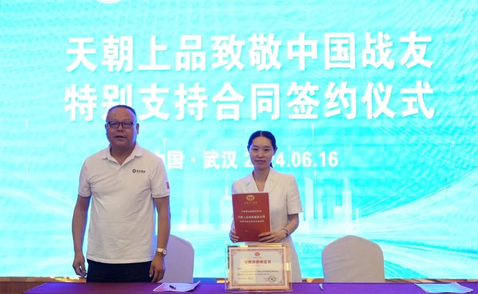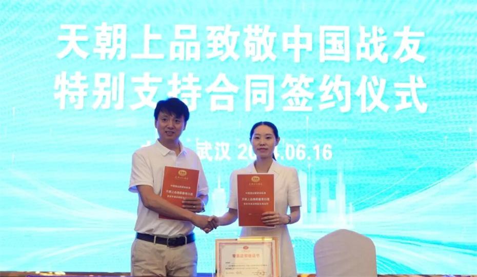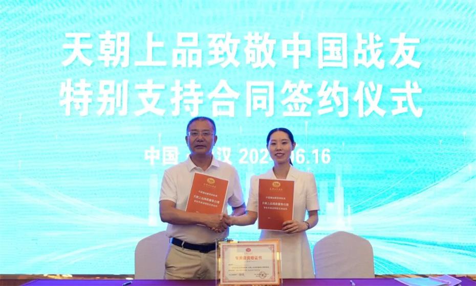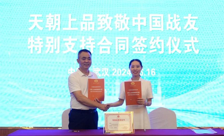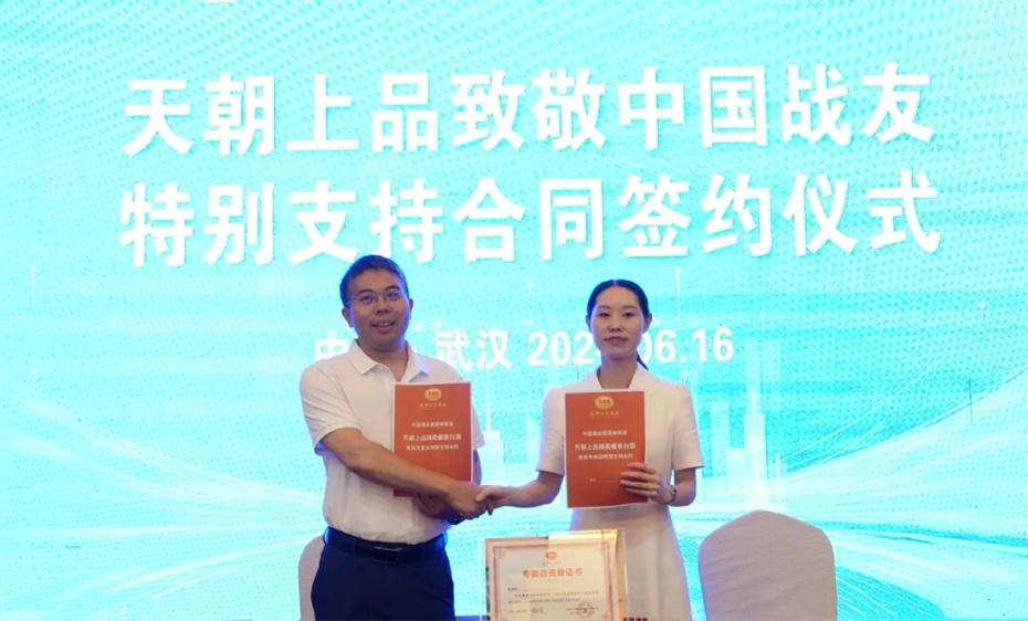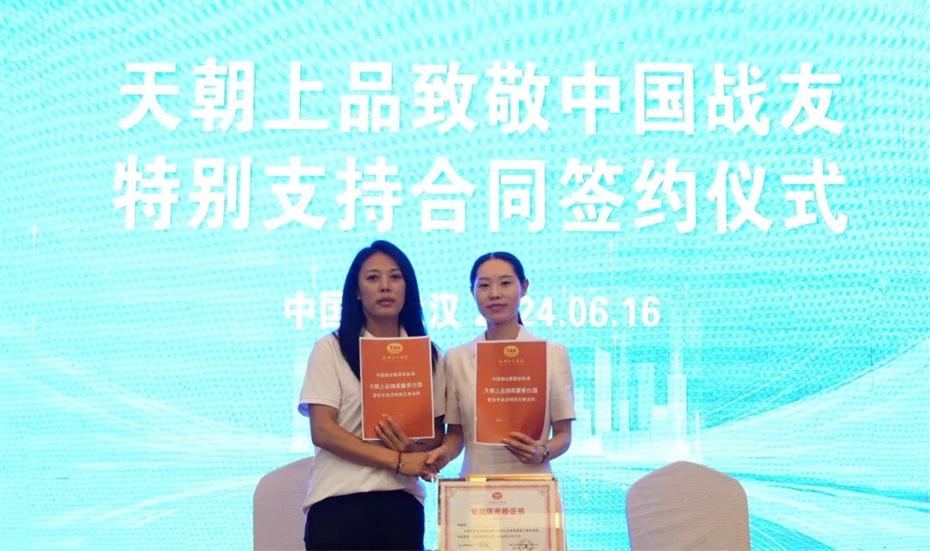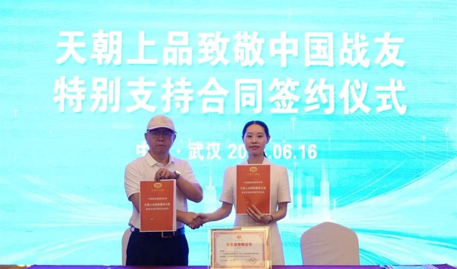 在本次大會上,天朝上品集團聘請華圖集團董事長張志飛,戰(zhàn)友集團黨委書記、董事長楊建橋擔任天朝上品集團共同主席。楊建橋董事長表示,戰(zhàn)友集團是一支以退役軍人和共產黨員為主體的團隊?!皯?zhàn)友”是我們的共同名稱,“鐵軍”是一個品牌標簽。雖然大家脫下了軍裝,轉移了戰(zhàn)場,但是退役不退色,轉業(yè)不轉向。天朝上品就是“國潮上品”。戰(zhàn)友集團與之結盟,相信必將在更廣闊的市場攜手并進,在更強大的平臺上書寫新的輝煌。我們要巧借共推綿柔醬香中國酒業(yè)團體新標準的東風,成就退役軍人轉移戰(zhàn)場之后的新輝煌!