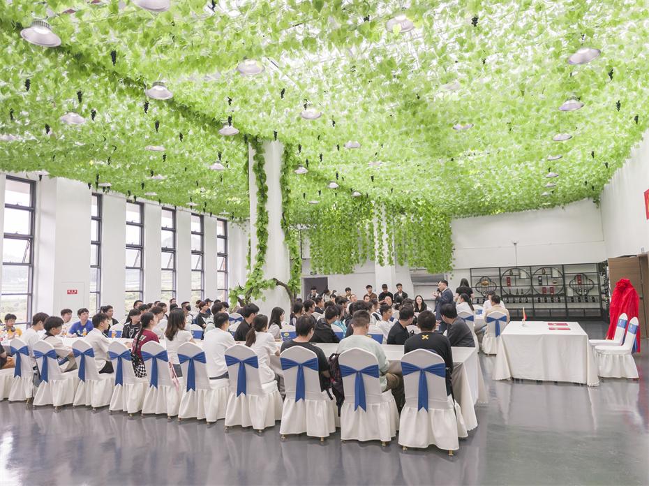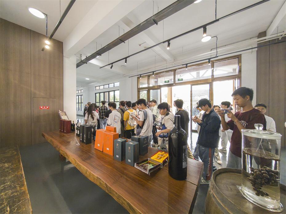 貴州大學(xué)釀酒與食品工程學(xué)院黨委書記凌琦、院長黃永光、釀酒工程教研室主任王春曉、辦公室副主任吳曉菲、工會主席陳莉、實驗中心副主任羅小葉,天朝上品集團(tuán)監(jiān)事長姚學(xué)中、副總經(jīng)理韓萍,天朝上品(貴州)葡萄酒有限公司總經(jīng)理羅旭其出席揭牌儀式。活動由葡萄酒有限公司營銷總經(jīng)理強堯主持,貴州大學(xué)釀酒與食品工程學(xué)院百余名學(xué)生參觀天朝上品葡萄酒莊,并見證了這一重要時刻。