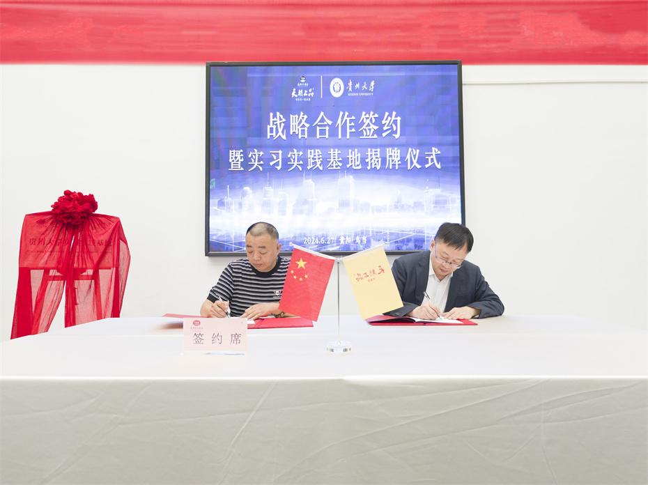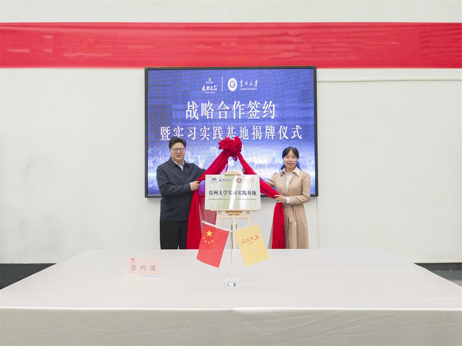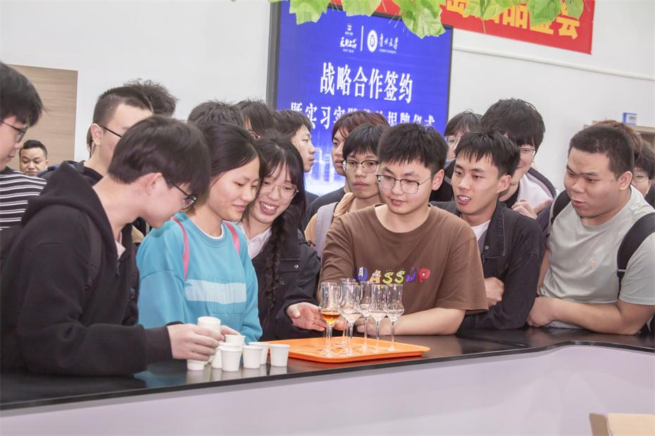 隨后,天朝上品(貴州)葡萄酒有限公司總經(jīng)理羅旭其與黃永光院長完成簽約儀式,天朝上品集團(tuán)監(jiān)事長姚學(xué)中與貴州大學(xué)釀酒與食品工程學(xué)院黨委書記凌琦為“貴州大學(xué)實習(xí)實踐基地”揭牌,這也標(biāo)志著天朝上品集團(tuán)化發(fā)展后首個大學(xué)生實習(xí)實踐基地正式開啟,天朝上品葡萄酒莊在助力鄉(xiāng)村振興的同時,在校企合作中扮演重要的角色,承擔(dān)著人才培養(yǎng)的社會責(zé)任,幫助提高學(xué)生的實踐能力和綜合素質(zhì),為學(xué)生未來就業(yè)提供更有效更扎實的基礎(chǔ)。