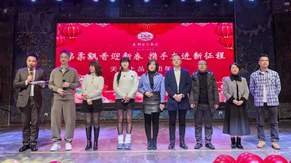祥龍駕云辭舊歲,靈蛇獻寶啟新程。2025年1月25日,天朝上品集團以“綿柔飄香迎新春 攜手奮進新征程”為主題,舉行乙巳蛇年集團年終總結(jié)會。天朝上品集團領(lǐng)導班子、子公司代表和總部員工歡聚一堂,共度美好時光,共話天朝上品美好明天。