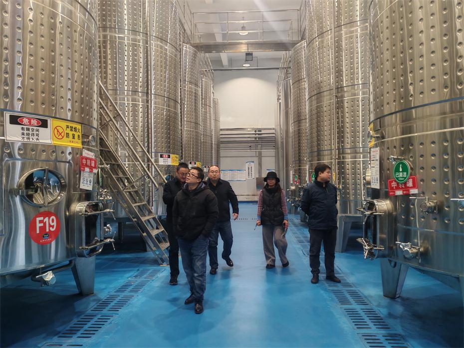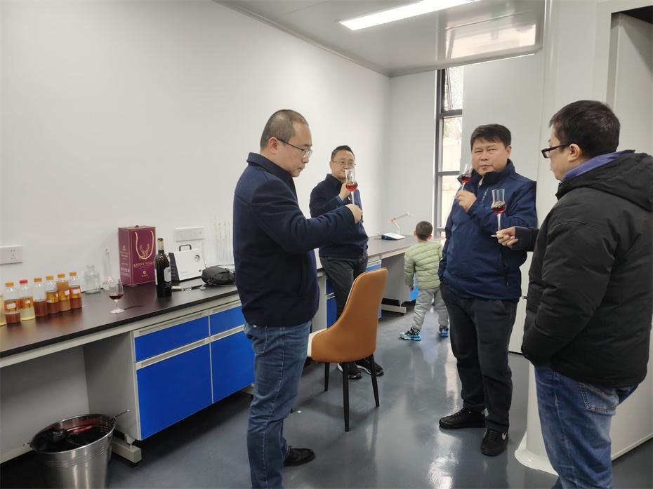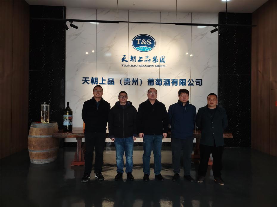 12月19日,茅臺學院專家教授一行蒞臨天朝上品葡萄酒莊考察交流。專家們參觀了天朝上品葡萄酒莊的生產線、灌裝間、儲酒區(qū)等,對天朝上品葡萄酒莊采用的國際一流設施設備,立足中國本土葡萄品種,打造貴州第二張酒名片等做法深表贊同。同時對特色葡萄品種釀酒、副產品開發(fā)等方面進行了深入交流,并邀請?zhí)斐掀菲咸丫乒炯夹g人員到茅臺學院參觀考察。