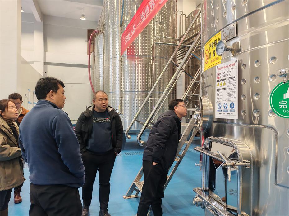 1月14日,貴陽市烏當區(qū)農業(yè)農村局黨委書記、局長袁會斌,黨委委員、副局長鄧勇一行蒞臨天朝上品葡萄酒莊調研。了解企業(yè)生產經營情況,及目前存在的問題等。并就訂單農業(yè)、特色水果深加工等問題進行交流。