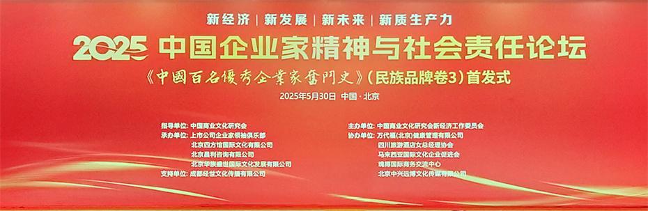 5月30日,由中國商業(yè)文化研究會指導(dǎo),中國商業(yè)文化研究會新經(jīng)濟工作委員會主辦的2025中國企業(yè)家精神與社會責(zé)任論壇暨《中國百名優(yōu)秀企業(yè)家奮斗史》(民族品牌卷3)首發(fā)式在北京莊嚴(yán)的全國人大會議中心舉行。天朝上品酒業(yè)集團董事長黃永毅受邀出席本次會議,與各級領(lǐng)導(dǎo),優(yōu)秀企業(yè)家代表共話新時代企業(yè)家使命,共謀未來發(fā)展。