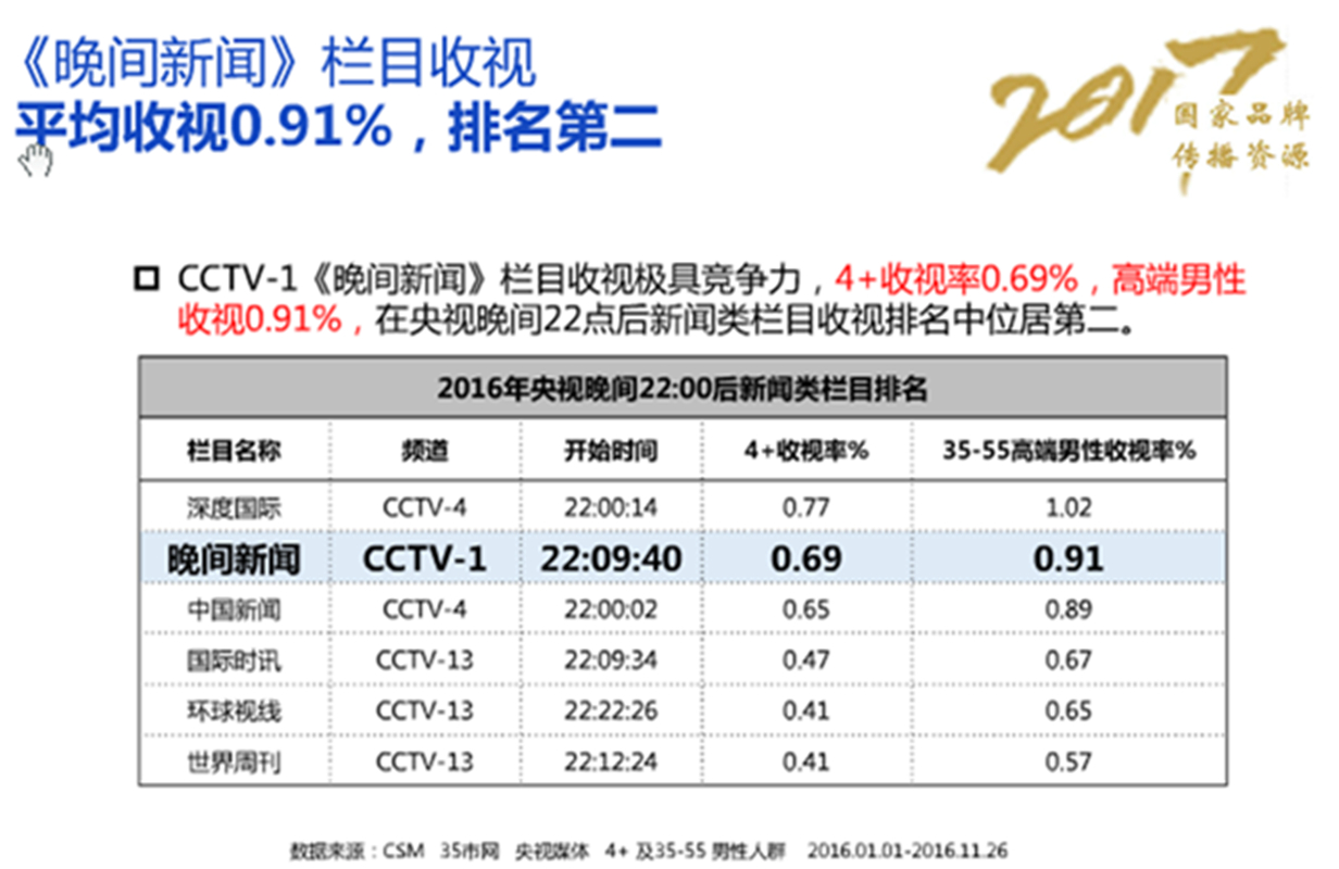 CCTV-1《晚間新聞》是繼CCTV-1《新聞聯(lián)播》之后影響力最大、穩(wěn)定性最高的綜合新聞欄目。中插廣告在國家品牌計劃廣告區(qū)間播出,背書頂級品牌的傳播效應(yīng),快速提升品牌實力感和知名度,其傳播資源和價值可謂彌足珍貴,開辦多年深受廣大受眾喜愛。據(jù)悉,2018年1月至12月,“天朝上品·給世界一瓶好酒”的宣傳廣告將全年穿插在CCTV-1《晚間新聞》欄目之中,播出時間為:首播22:00-22:30,重播01:00-01:30。