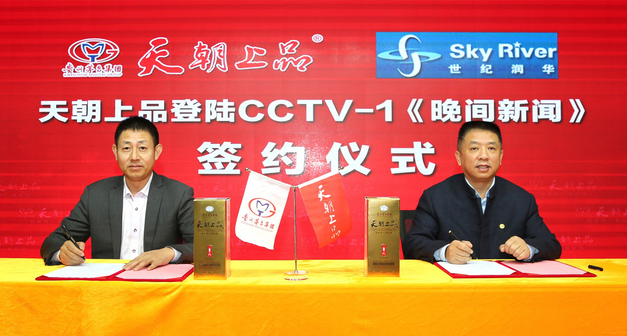 1月3日,天朝上品酒業(yè)與中央電視臺2017年4A級信用廣告代理公司正式簽署戰(zhàn)略合作協(xié)議,2018年全年強勢登陸CCTV-1《晚間新聞》欄目中插廣告。天朝上品酒業(yè)總裁黃永毅,副總裁江貽燦、吳瑛,財務(wù)總監(jiān)李佳玲,北京世紀潤華廣告有限公司副總經(jīng)理謝志明、直企部經(jīng)理朱麗菊等出席簽約儀式。
