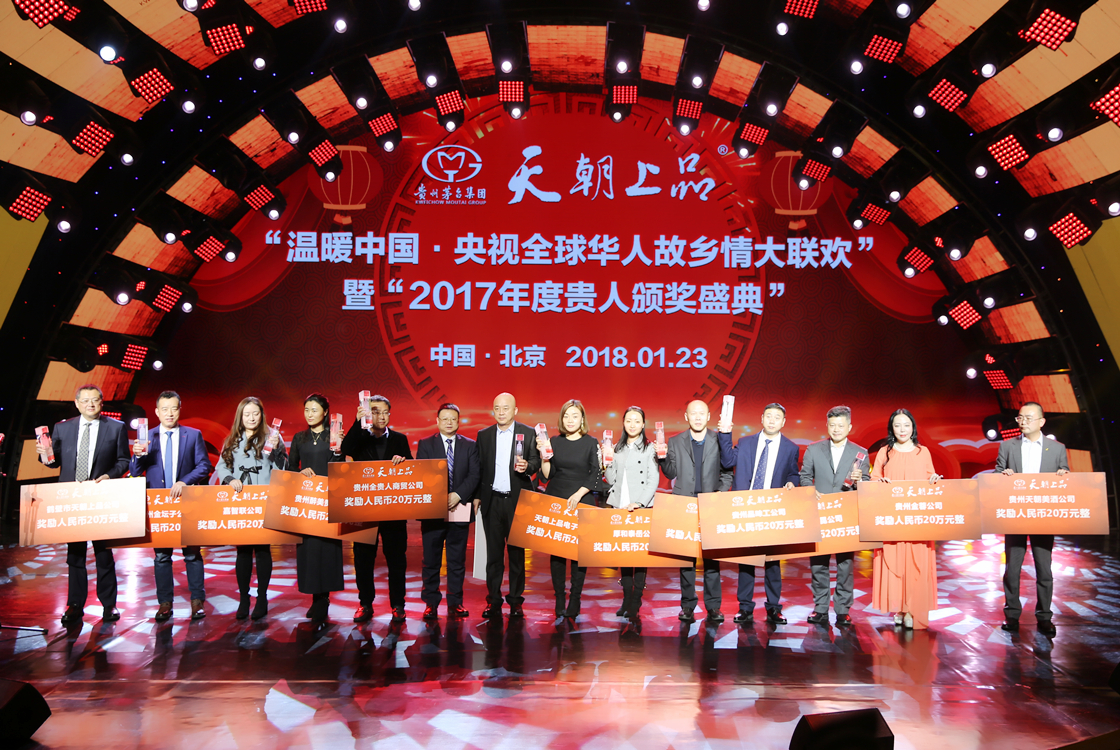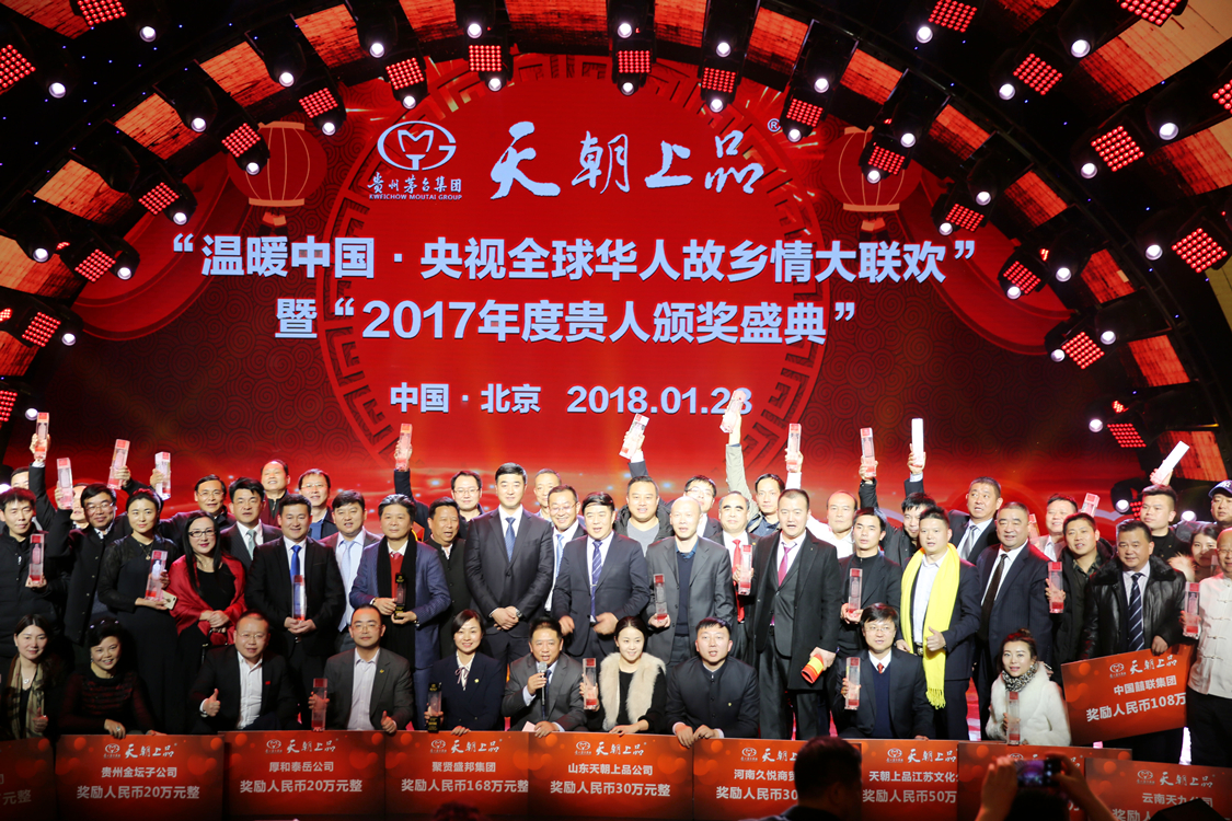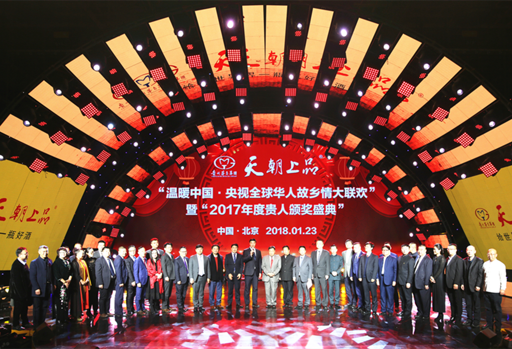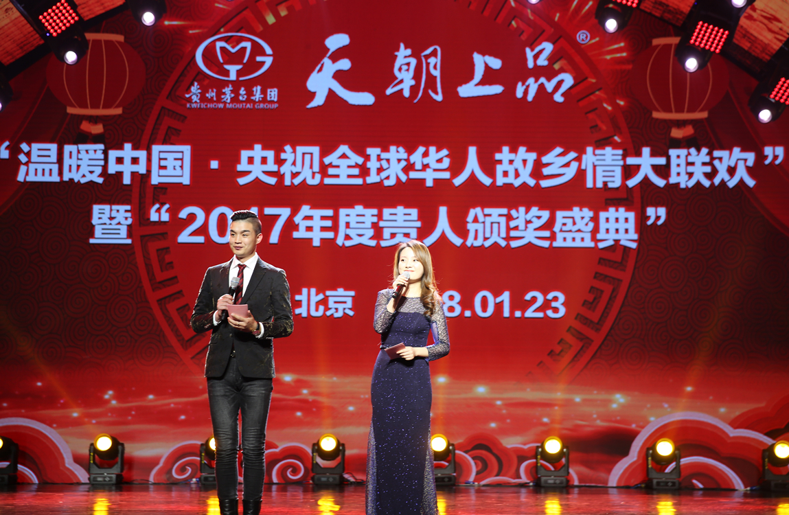 2018年1月23日,首都北京在冬日暖陽的沐浴下紅妝素裹,分外妖嬈。位于中關(guān)村CCTV-7演播大廳張燈結(jié)彩,繁弦急管,彌漫著濃濃的貴人酒香,由天朝上品·貴人酒獨家冠名,中央電視臺第7頻道、美國ICN國際衛(wèi)視聯(lián)袂主辦,貴州貴人大數(shù)據(jù)區(qū)塊鏈產(chǎn)業(yè)發(fā)展股份有限公司、北京俏佳人文化傳播有限責(zé)任公司、貴陽領(lǐng)籌創(chuàng)客會展服務(wù)有限公司聯(lián)聯(lián)合承辦,央視7套《陽光大道》欄目制片人袁濤精心打造,央視主持人辛嘉寶和劉棟棟主持的《溫暖中國·央視全球華人故鄉(xiāng)情春節(jié)大聯(lián)歡》(以下簡稱《貴人春晚》)暨天朝上品“2017年度貴人頒獎盛典”在此隆重舉行并現(xiàn)場錄制。中國網(wǎng)、農(nóng)視網(wǎng)、新浪網(wǎng)、央視新聞移動網(wǎng)、騰訊新聞、微博互動、新浪直播間、東方頭條8大媒體同步直播。