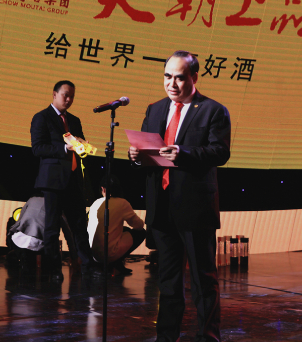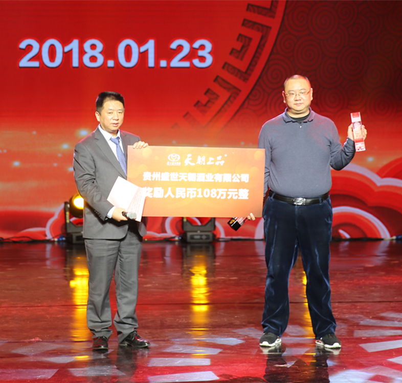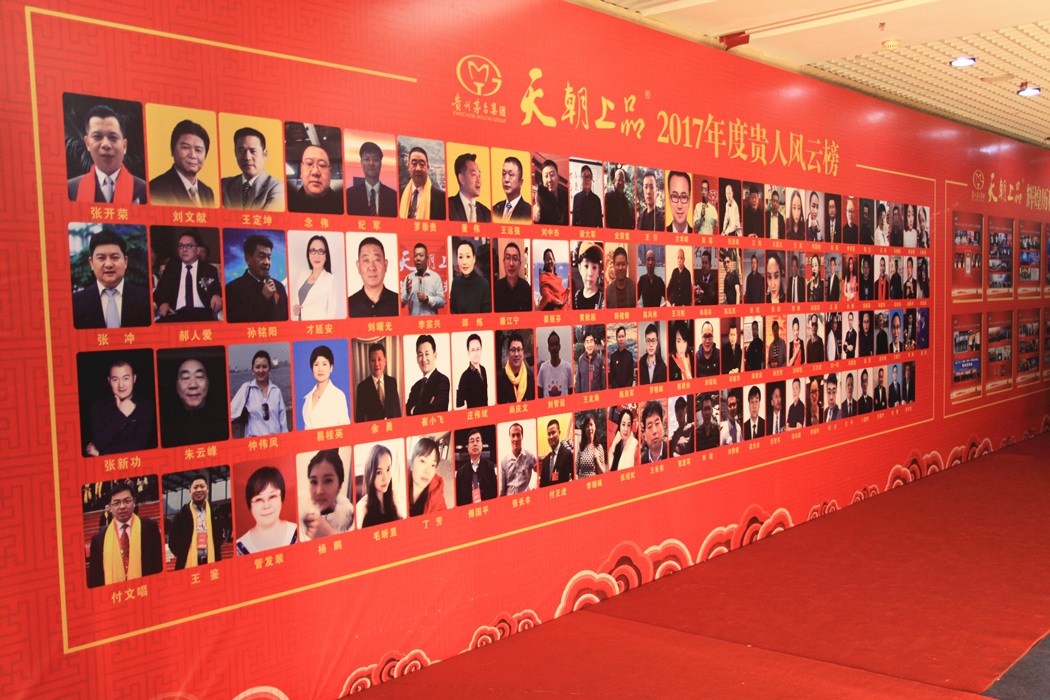 貴州茅臺集團(tuán)總經(jīng)理助理、貴州茅臺酒廠集團(tuán)技術(shù)開發(fā)公司董事長、天朝上品酒業(yè)(貴州)有限公司董事長楊鳳祥,CCTV-7農(nóng)業(yè)節(jié)目、中國農(nóng)業(yè)電影電視中心黨委書記、主任趙澤琨,北京特許經(jīng)營權(quán)交易所董事長、貴陽眾籌金融交易所董事長劉文獻(xiàn)分別致辭。特邀原國防部外事辦主任、國防部新聞發(fā)言人張邦棟將軍,國家工信部信息管理中心主任王少杰,美國ICN國際衛(wèi)視臺長李豐,中法聯(lián)合會會長劉子奎,“國際選美”教父亞力山大·古斯塔沃,委瑞內(nèi)拉世界小姐冠軍Hanna Weiser等嘉賓與貴州茅臺酒廠集團(tuán)技術(shù)開發(fā)公司營銷總經(jīng)理張志煒,天朝上品酒業(yè)總裁黃永毅,副總裁江貽燦、吳瑛,財務(wù)總監(jiān)李佳玲以及天朝上品貴人功勛代表、全國經(jīng)銷商代表,恭賀新禧,共享榮耀。