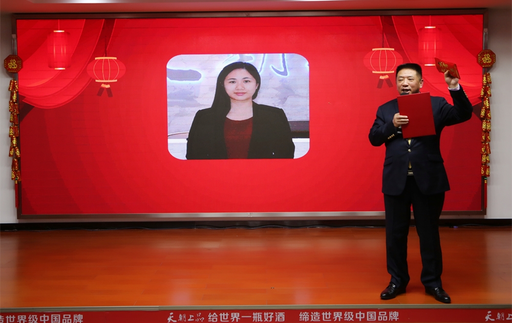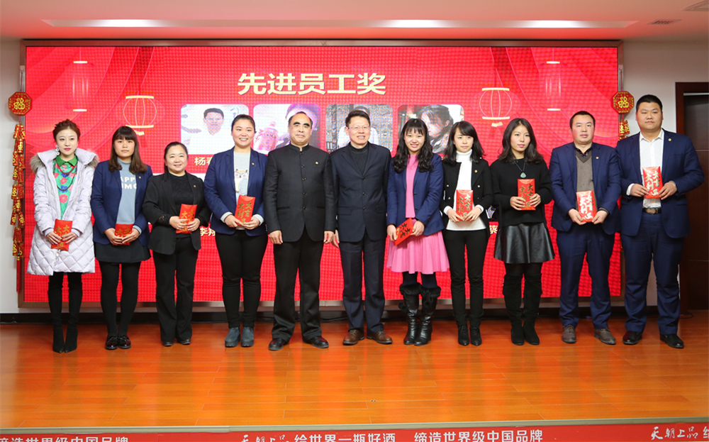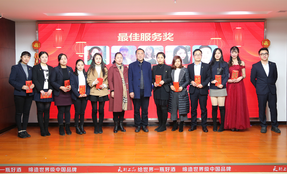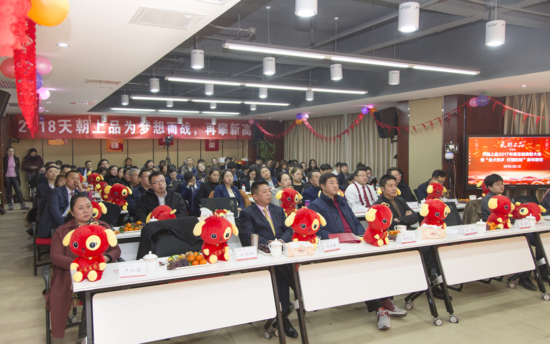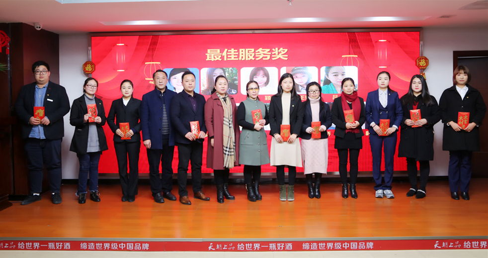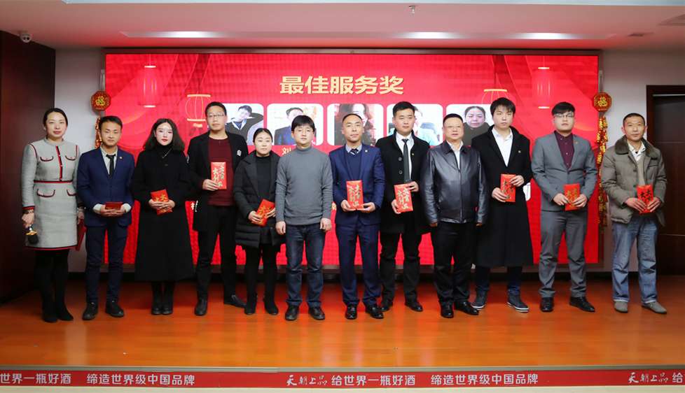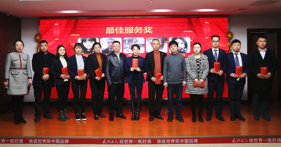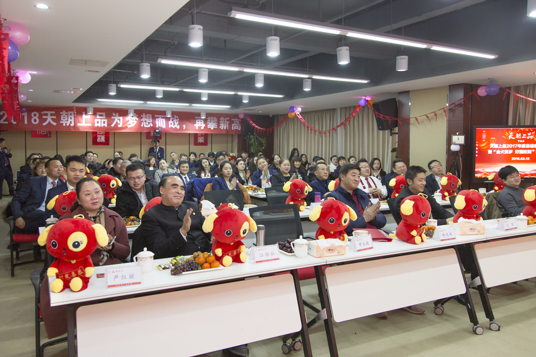 王俊書(shū)記發(fā)表了鼓舞人心、催人奮進(jìn)的講話。他對(duì)天朝上品2017年取得的喜人成果給予了充分肯定和高度贊揚(yáng)。2017年,天朝上品戰(zhàn)略單品“貴人酒”創(chuàng)造了驕人的銷售業(yè)績(jī),為實(shí)現(xiàn)“十三五”宏偉目標(biāo)贏得了開(kāi)局滿堂紅。此外,天朝上品峰會(huì)的成功召開(kāi),海陸空天品牌戰(zhàn)略的全方位啟動(dòng),為國(guó)際化發(fā)展進(jìn)程按下了“快進(jìn)鍵”。今天的總結(jié)表彰會(huì)既是分享喜悅的慶功會(huì),也是催人奮進(jìn)的動(dòng)員會(huì)。希望受到表彰的員工不驕不躁、再接再厲,趁熱打鐵,乘勝追擊,在沖刺“百億天朝”的過(guò)程中發(fā)揮積極性、主動(dòng)性和創(chuàng)造性,打造一支見(jiàn)第一就搶、見(jiàn)紅旗就扛的優(yōu)秀團(tuán)隊(duì),共同譜寫“百億天朝”壯麗篇章。