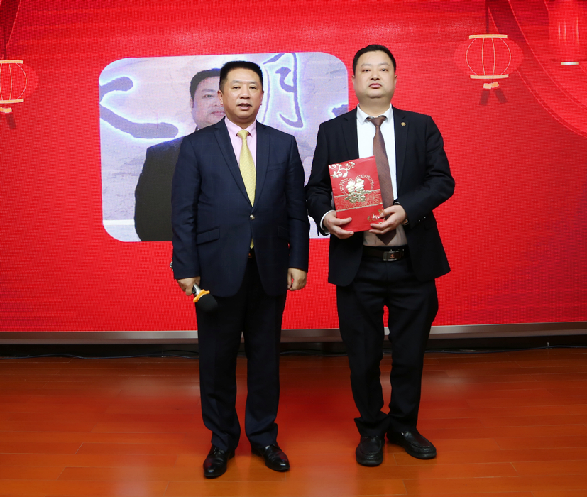 楊鳳祥董事長(zhǎng)(右)為獲獎(jiǎng)員工頒獎(jiǎng)