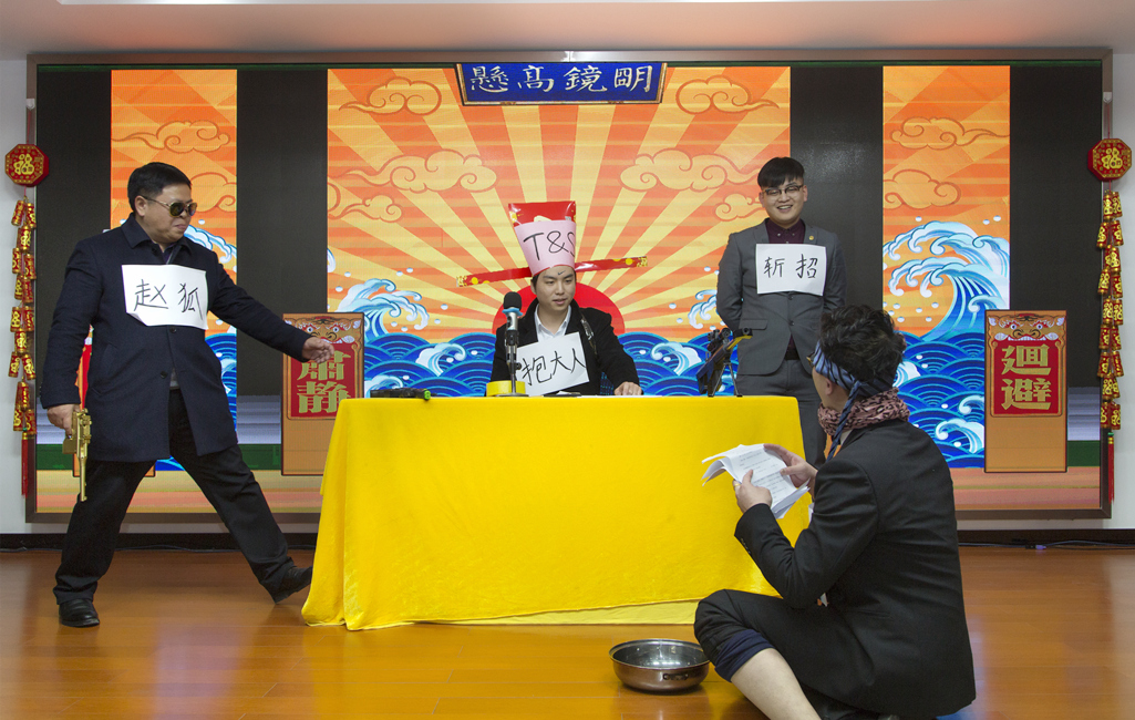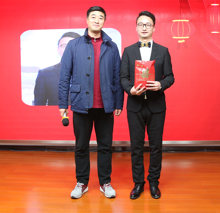 領(lǐng)導(dǎo)為表演者頒發(fā)新年獎(jiǎng)品