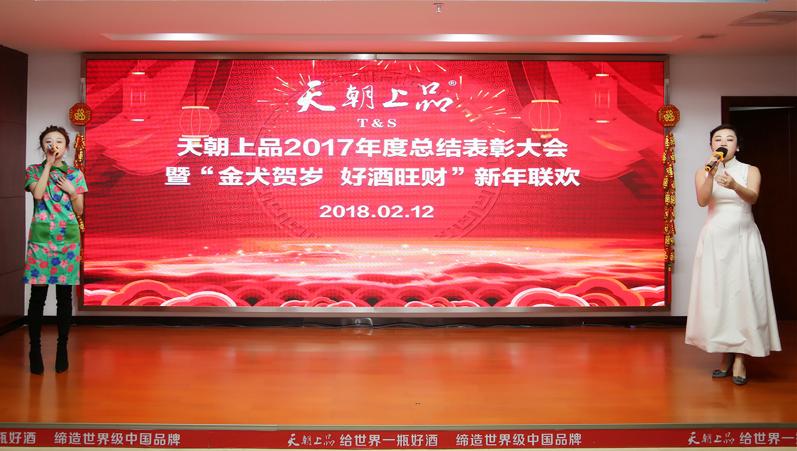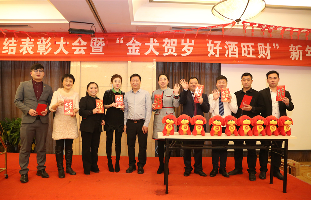 2月12日,天朝上品酒業(yè)貴陽(yáng)總部張燈結(jié)彩、喜氣洋洋,彌漫著一股濃濃的年味兒,天朝上品2017年度總結(jié)表彰大會(huì)暨“金犬賀歲·好酒旺財(cái)”新年聯(lián)歡在此隆重舉行。茅臺(tái)集團(tuán)總經(jīng)理助理、茅臺(tái)酒廠集團(tuán)技術(shù)開(kāi)發(fā)公司和天朝上品酒業(yè)董事長(zhǎng)楊鳳祥,茅臺(tái)酒廠集團(tuán)技術(shù)開(kāi)發(fā)公司黨委書(shū)記、副總經(jīng)理、天朝上品酒業(yè)董事王俊,天朝上品酒業(yè)總裁黃永毅,副總裁江貽燦、吳瑛,財(cái)務(wù)總監(jiān)李佳玲,以及出席本次聯(lián)歡會(huì)的茅臺(tái)酒廠集團(tuán)技術(shù)開(kāi)發(fā)公司工會(huì)主席陳林,總經(jīng)理助理、辦公室主任陳濤,營(yíng)銷公司總經(jīng)理張志煒,營(yíng)銷支部書(shū)記嚴(yán)紅麗,物資配送中心副主任羅安剛,辦公室副主任韋成寶等領(lǐng)導(dǎo),與天朝上品全體員工及從全國(guó)各地回家過(guò)年的駐外機(jī)構(gòu)人員歡聚一堂,共話2017輝煌,開(kāi)啟2018征程。