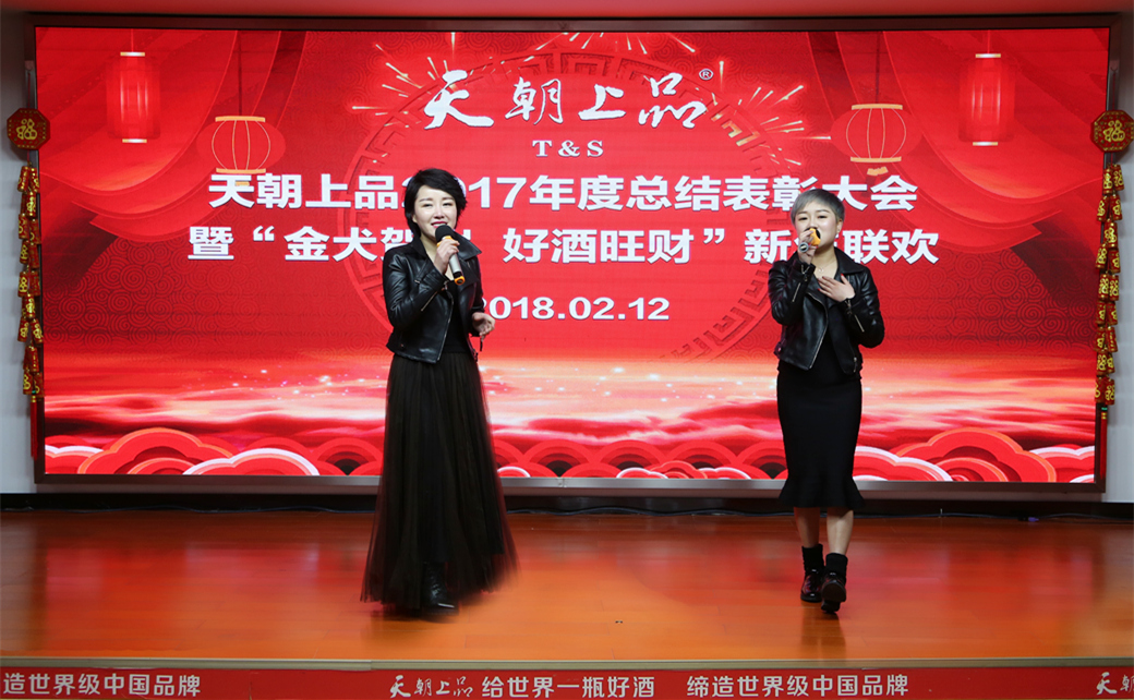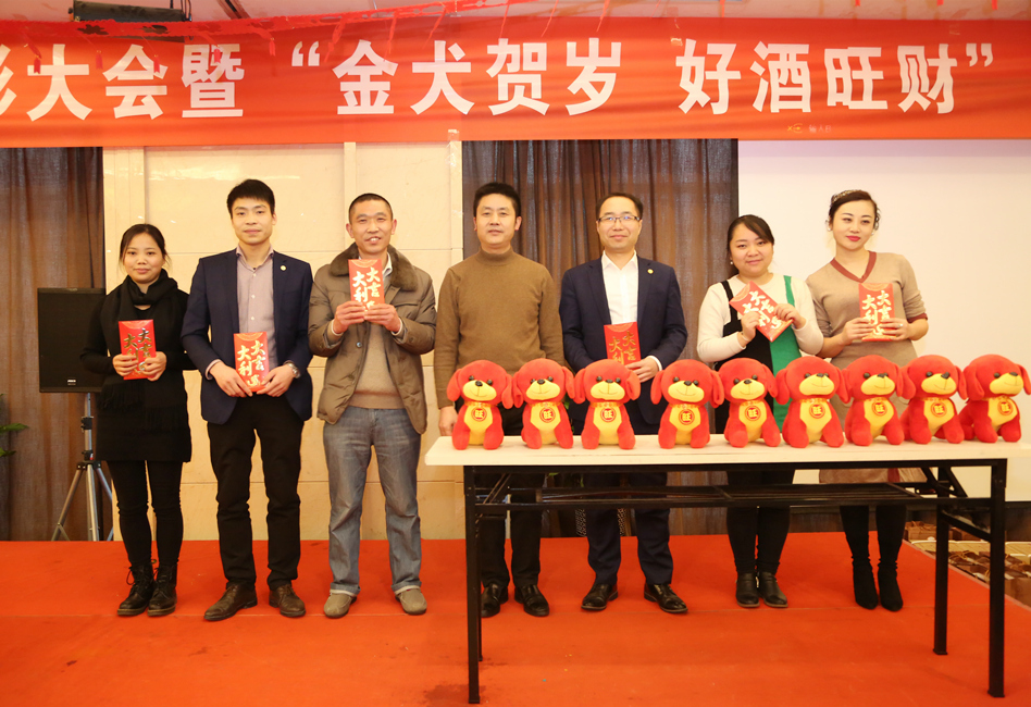 在接下來(lái)的“金犬賀歲·好酒旺財(cái)”大聯(lián)歡環(huán)節(jié),公司員工自編自演,自?shī)首詷?lè),精彩紛呈,高潮迭起。各部門同事們精心策劃的文藝表演讓人忍俊不禁,其樂(lè)融融,精彩的表演描繪了大國(guó)品牌輝煌的愿景,美妙的歌聲唱響了天朝上品美好的明天!在天朝上品大團(tuán)圓家宴上,賓主們觥籌交錯(cuò),頻頻舉杯,互致祝福,把酒言歡,扣人心弦的抽獎(jiǎng)環(huán)節(jié)穿插其間,各種大獎(jiǎng)花落誰(shuí)家更是把現(xiàn)場(chǎng)的歡樂(lè)氛圍推向了高潮。