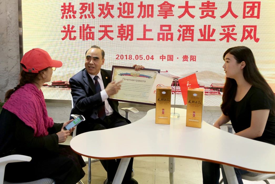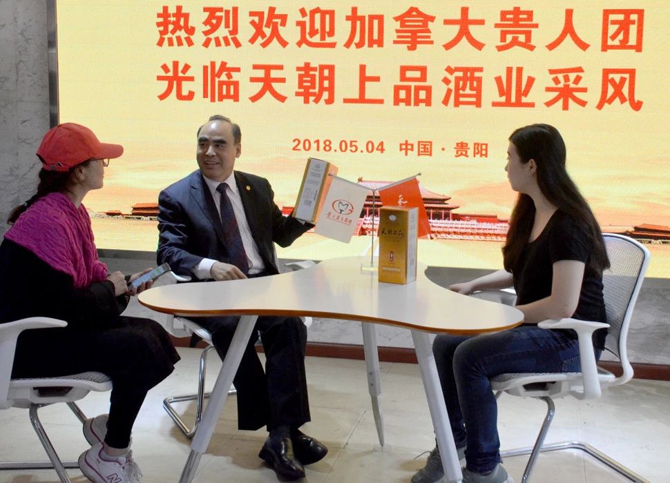 江貽燦副總裁向來(lái)賓簡(jiǎn)要介紹了天朝上品的發(fā)展歷程和品牌文化。他強(qiáng)調(diào),世界白酒看中國(guó),中國(guó)白酒看貴州,貴州白酒看茅臺(tái),貴州白酒的行業(yè)地位可見(jiàn)一斑。天朝上品作為茅臺(tái)酒廠集團(tuán)技術(shù)開(kāi)發(fā)公司研發(fā)的柔和醬香白酒,順應(yīng)了市場(chǎng)發(fā)展趨勢(shì),受到國(guó)內(nèi)外消費(fèi)者的熱捧。天朝上品以“給世界一瓶好酒”為愿景,堅(jiān)持品類(lèi)+品質(zhì)+品牌的發(fā)展戰(zhàn)略,以酒為媒,縱橫百業(yè),共享資源,共塑品牌,以打造大眾卓越品牌為目標(biāo),以締造世界級(jí)中國(guó)品牌為使命,面市至今榮獲160余項(xiàng)國(guó)內(nèi)外大獎(jiǎng),獲得了國(guó)家和國(guó)際的共同認(rèn)可。希望加拿大攝影團(tuán)的貴人們與我們一起搭建起傳播貴州文化的橋梁,讓更多的外國(guó)朋友喝上柔和醬香,愛(ài)上天朝上品。