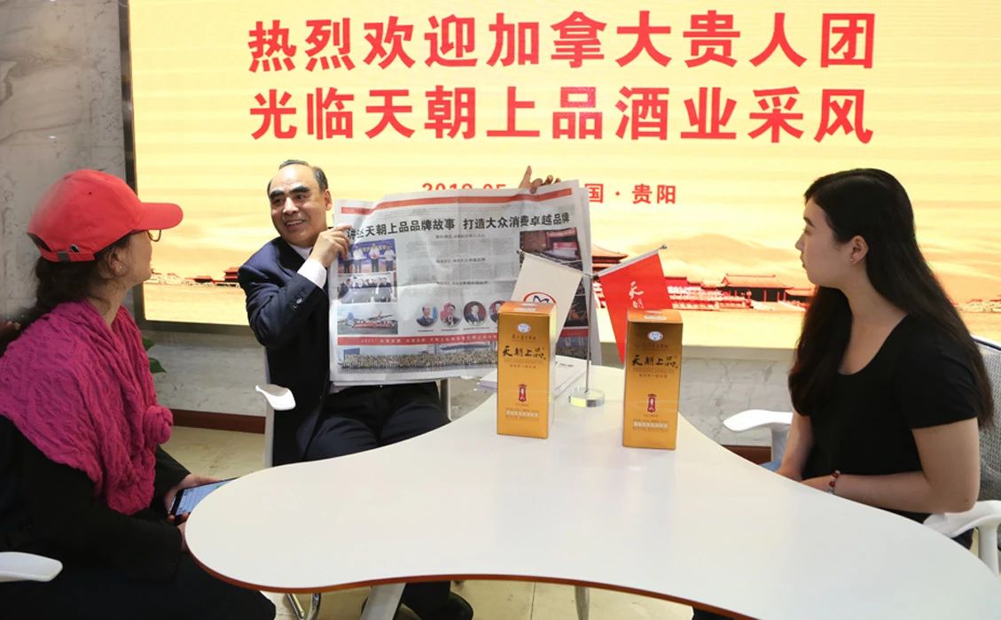 2018年5月4日,“加拿大攝影師眼中的貴州”攝影活動(dòng)走進(jìn)天朝上品,40余位中外攝影師來(lái)到天朝上品酒業(yè)采風(fēng),用光影這一國(guó)際語(yǔ)言,從西方人的視角向世界展示天朝上品的品牌文化,講述天朝上品的品牌故事,激發(fā)北美游客走進(jìn)貴州,了解中國(guó)白酒,認(rèn)識(shí)柔和醬香。天朝上品酒業(yè)總裁黃永毅,副總裁江貽燦、吳瑛和財(cái)務(wù)總監(jiān)李佳玲陪同采風(fēng)?!妒澜缛A文媒體》記者呂芳、《多倫多新聞網(wǎng)》記者趙紫月、《國(guó)際藝術(shù)新聞網(wǎng)》攝影記者徐智、《健康生活報(bào)道》記者馬麗霞對(duì)天朝上品作了專(zhuān)題采訪。