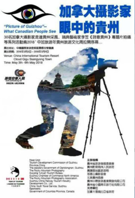 2018年是中加兩國(guó)政府確定的“中加旅游文化年”,其中“貴州旅游文化周”是中國(guó)總理李克強(qiáng)與加拿大總理特魯多商定的“中加兩國(guó)旅游文化年”活動(dòng)之一?!凹幽么髷z影師眼中的貴州”攝影活動(dòng)由貴州省旅游發(fā)展委員會(huì)、黔南州人民政府、北美洛基山攝影協(xié)會(huì)、北美貴州商會(huì)主辦,在加拿大哥倫比亞省政府、大溫哥華本拿比市政府的大力支持下,35名加拿大專(zhuān)業(yè)攝影家走進(jìn)貴州采風(fēng)?!?018加拿大攝影師眼中的貴州藝術(shù)展”將在加拿大溫哥華展出,為北美地區(qū)人民充分了解和認(rèn)識(shí)貴州婀娜多姿、豐富多彩的自然景觀、人文風(fēng)情搭建一座友誼虹橋。