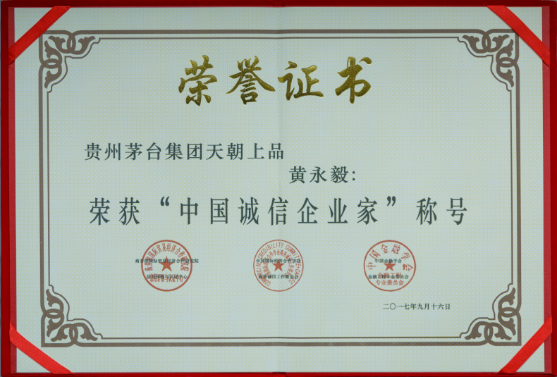 2017年9月16日,四達·第十三屆中國企業(yè)信用年會暨第二屆中國供應(yīng)鏈金融高層論壇上。天朝上品再次獲“中國誠信企業(yè)”、“中國誠信品牌”兩項殊榮,黃永毅總裁再次獲“中國誠信企業(yè)家”稱號。