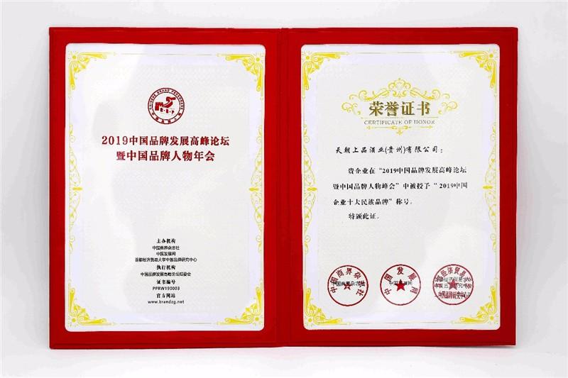 “2019中國(guó)企業(yè)十大民族品牌”獎(jiǎng)牌及證書(shū)