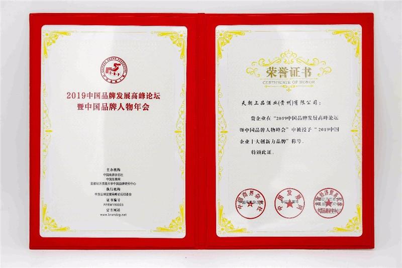 “2019中國(guó)企業(yè)十大創(chuàng)新力品牌”獎(jiǎng)牌及證書(shū)